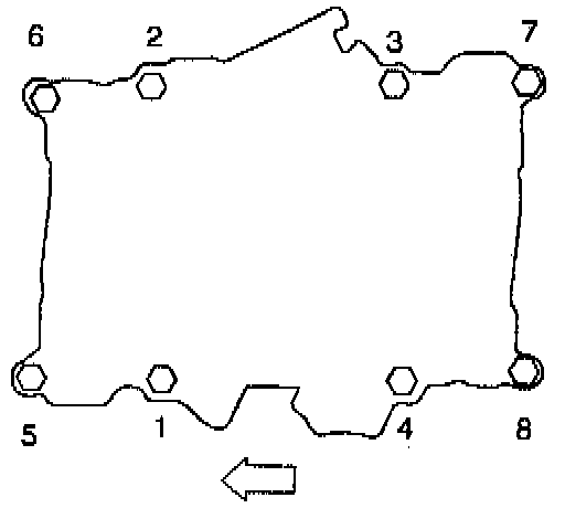 1) In the first pass, tighten all bolts in sequence to 8 Nm (72 inch lbs.).