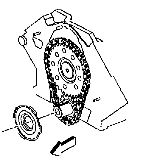 4. Install the camshaft sprocket and the camshaft timing chain to the front of the camshaft.