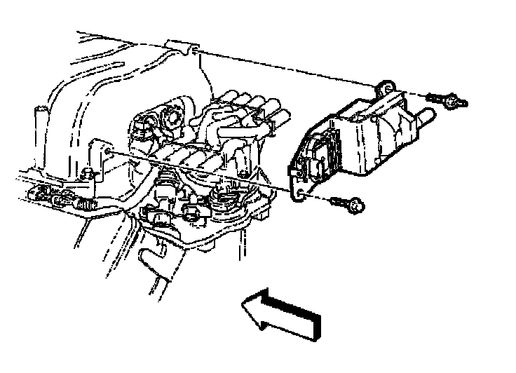 12. Install the ignition coil bracket bolts to the upper intake manifold. Tighten the ignition coil bracket bolts to 27 Nm (20 ft. lbs.).