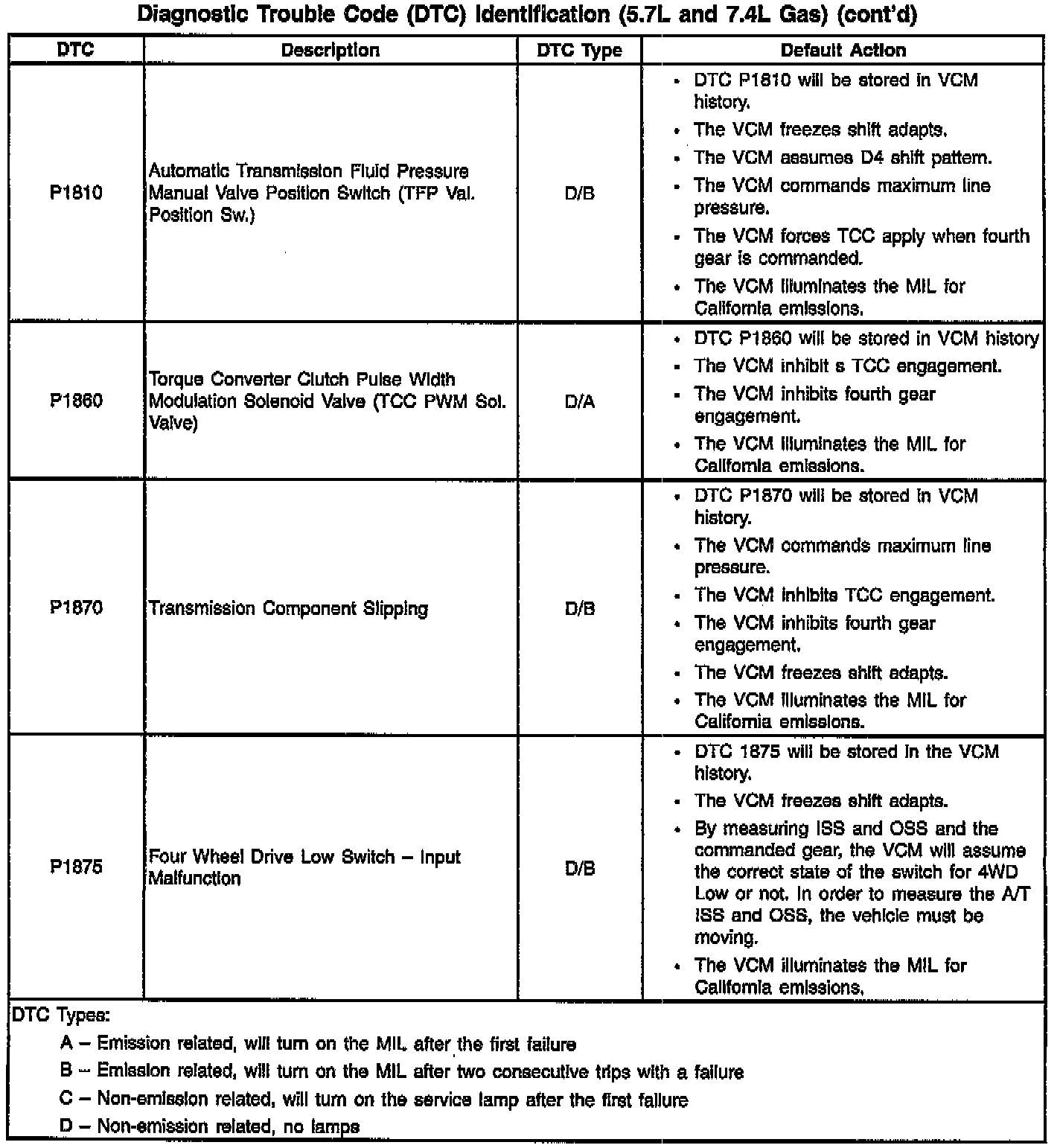 Diagnostic Trouble Code Descriptions