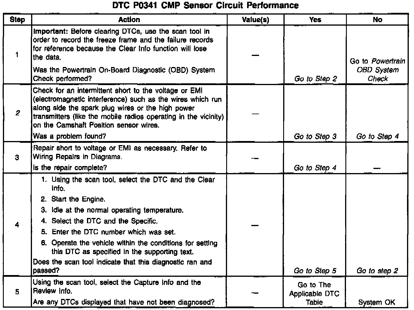 2. This step determines if DTC P0341 is the result of a hard failure or an intermittent condition. Determines, also, if voltage is available to the Camshaft Position (CMP) through the VCM.