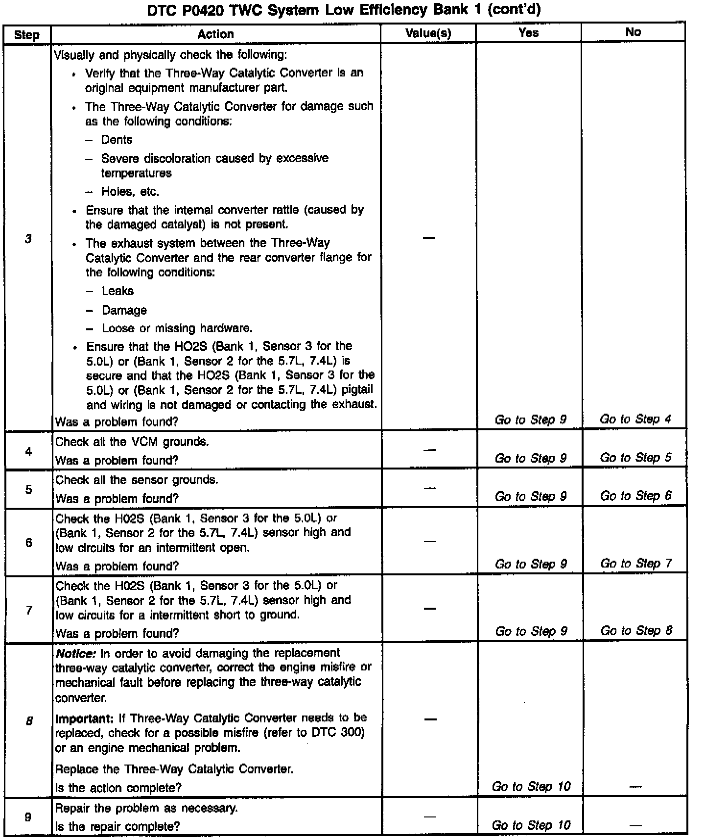 8. If the three-way catalytic converter needs to be replaced, make sure that the following conditions are not present to caused the catalyst to be damaged: