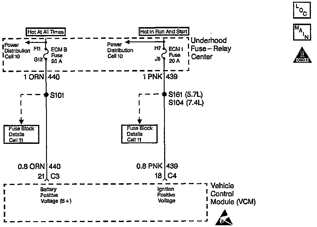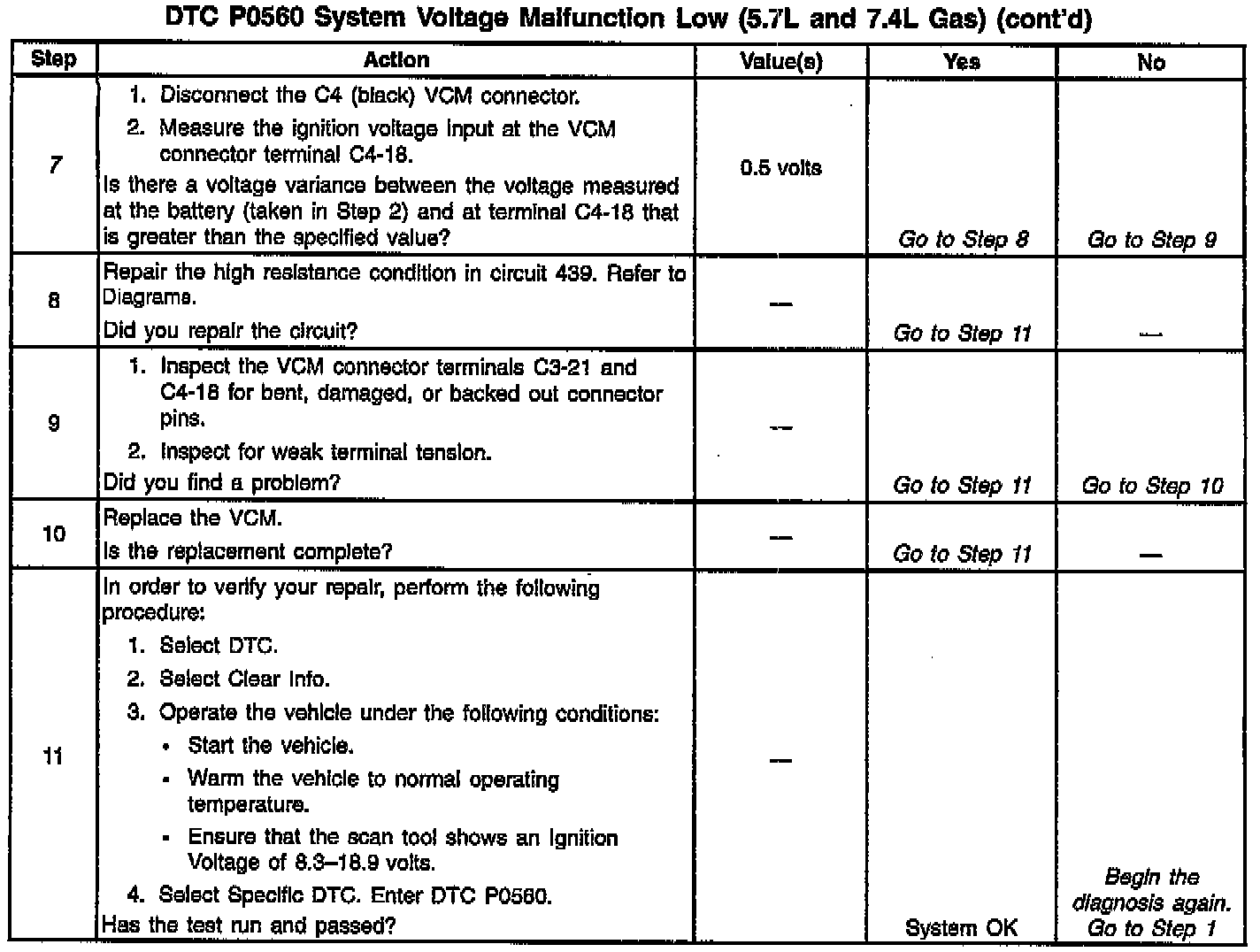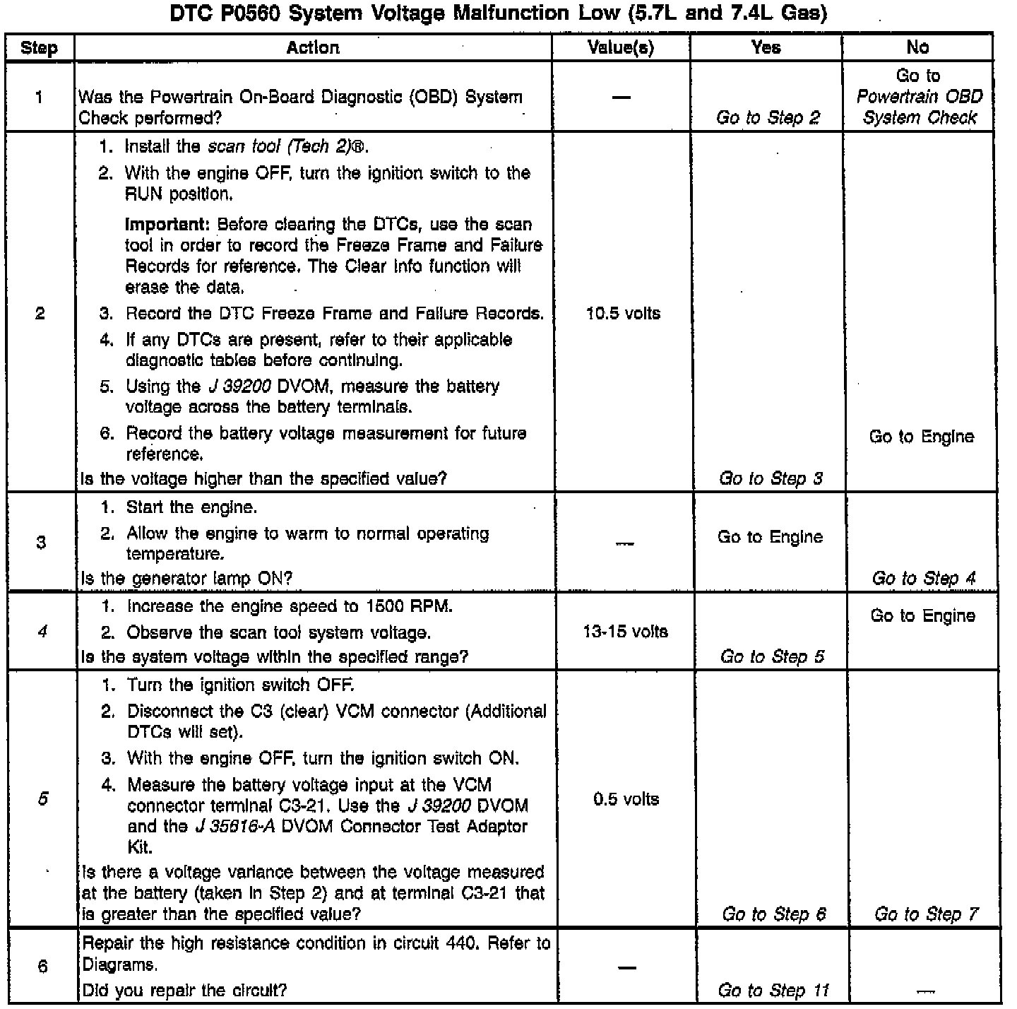 Circuits 439 is the ignition voltage feed for the Vehicle Control Module (VCM). Circuit 440 is the battery voltage feed for the VCM. If the VCM detects a low voltage, a high voltage for a long time, or a high voltage for a short time, then Diagnostic Trouble Code (DTC) P0560 sets. DTC P0560 is a type D DTC.