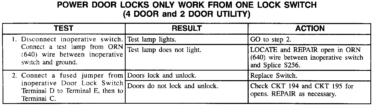 Power Door Locks Operate From One Door Lock Switch Only