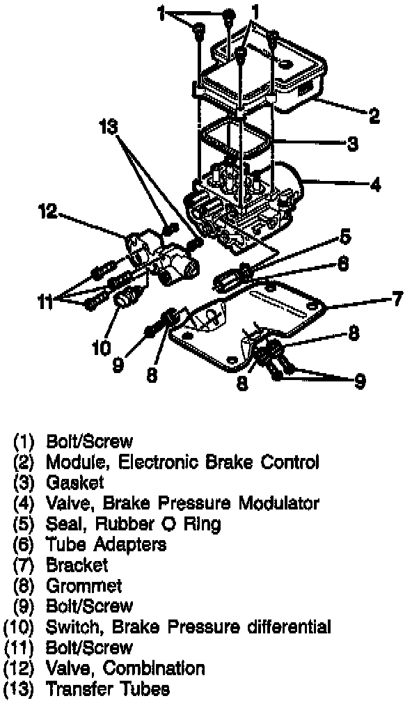 5. Three hydraulic lines from the tube adapters on the Brake Pressure Modulator Valve (BPMV).