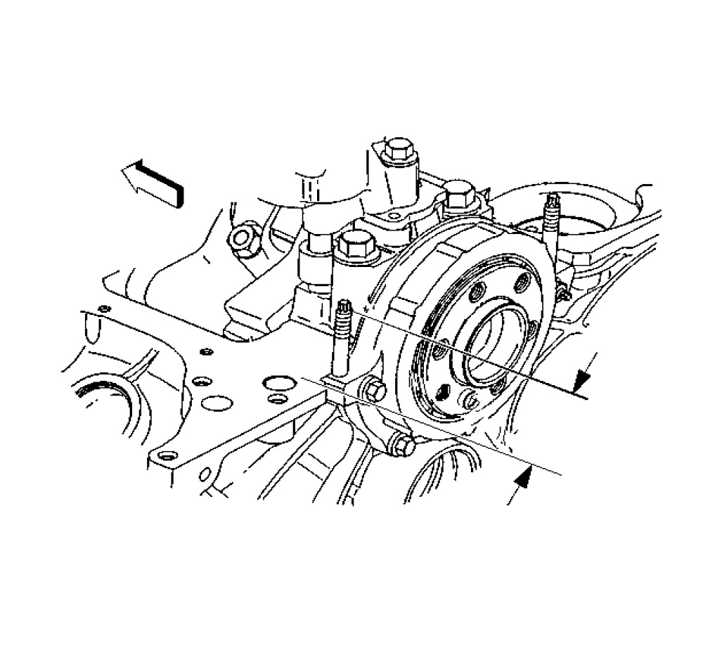 2. Apply sealant GM P/N 12346004 or the equivalent to the rear crankshaft seal to block joint. Apply the sealant for about 25 mm (1 in) in both directions from each of the four corners.