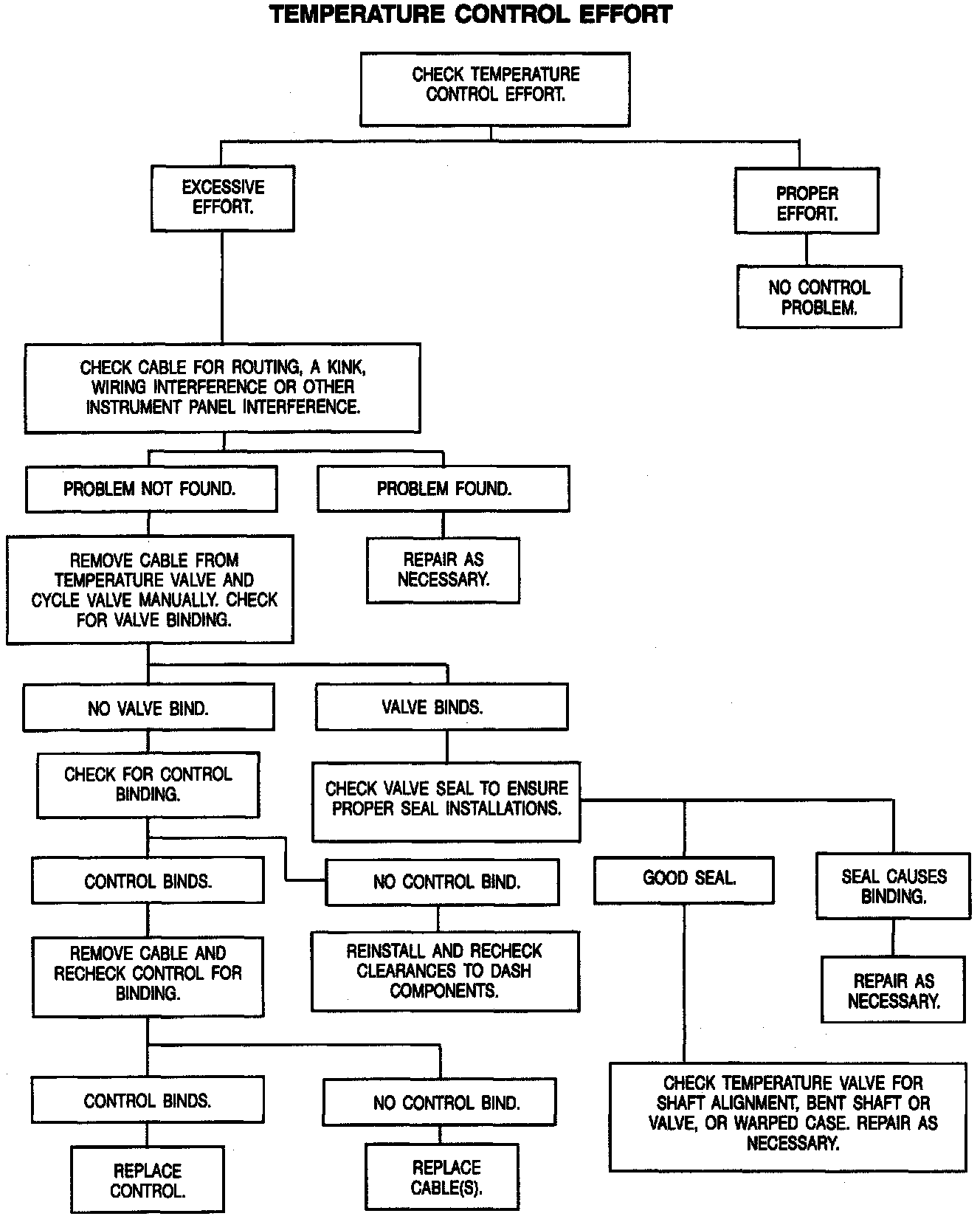 are possible causes of excessive temperature control rotary knob effort.