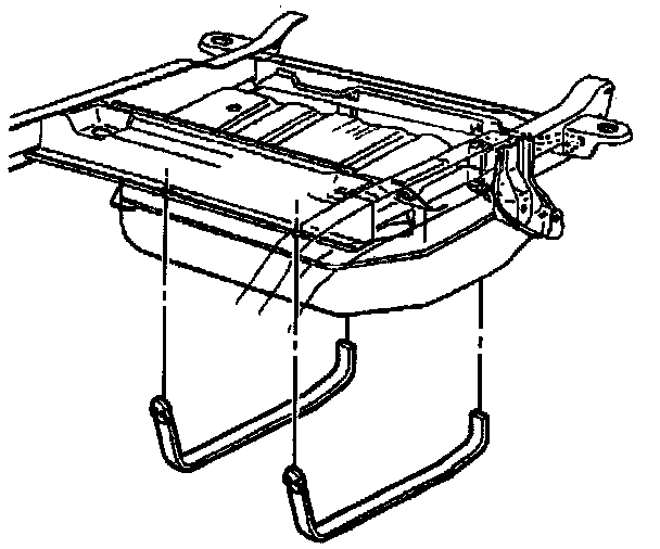 5. Support the fuel tank and remove the tank straps and insulator strips, if equipped.
