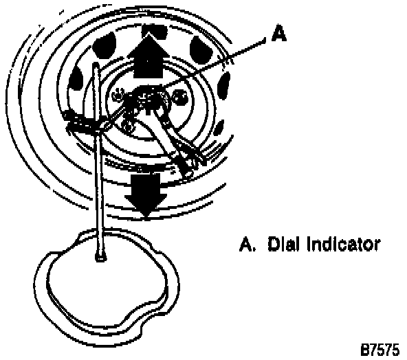 - With the vehicle on the jack stands, place a dial indicator against the spindle to show vertical movement.