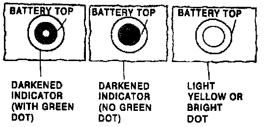 6. Batteries with a green dot showing in the hydrometer do not require charging unless they have just been discharged (such as cranking the vehicle).