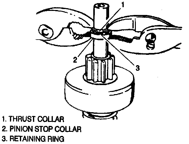 - Using two sets of pliers, push the pinion stop collar and thrust collar together to snap the stop collar onto the retaining ring.