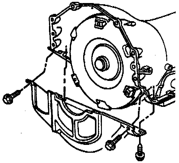 6. Bolts securing the torque converter cover to the transmission.