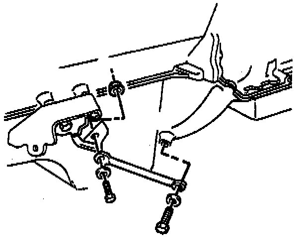 14. Two bolts, two washers, and a nut securing the brace to the engine and transmission.