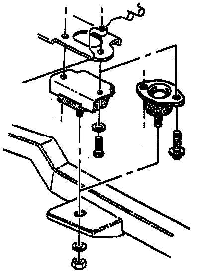 7. Two bolts and washers securing the mount to the transmission.