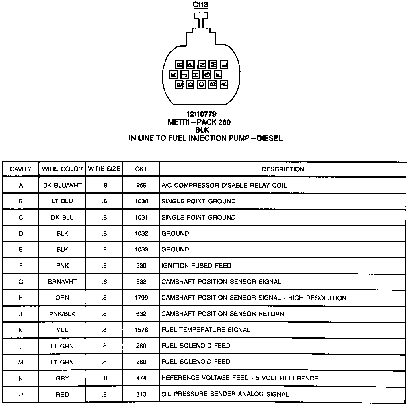 In Line To Fuel Injection Pump: C113: