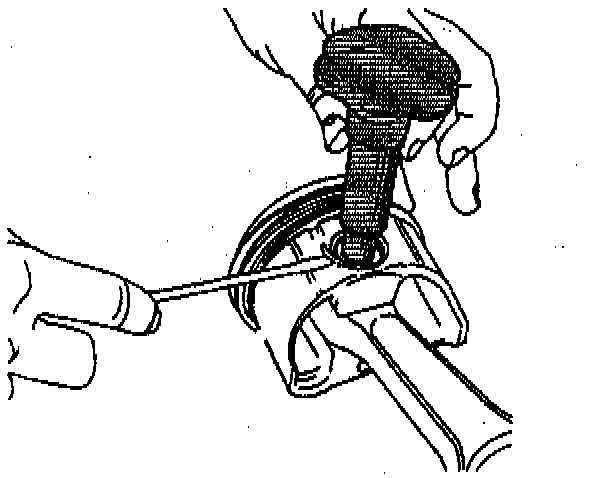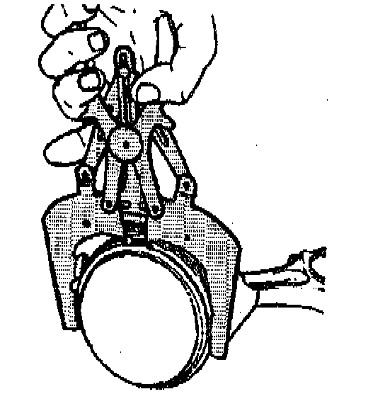 6. Install the piston retaining ring installer through the ring and into the piston pin.
