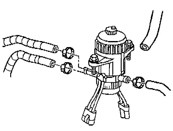 1. Remove the hoses and the clamps from the fuel filter assembly.