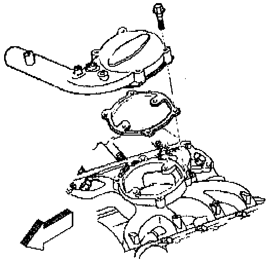 3. Remove the turbocharger short brace bolt and the turbocharger short brace.