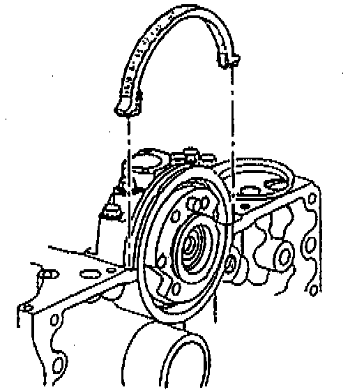 b. Install the oil pan rear seal to the rear main bearing cap before the sealer starts to dry.
