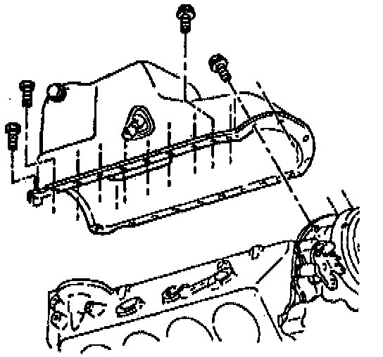 c. Apply a 5 mm (3/16 inch) bead of RTV sealant GM P/N 12345739 to the oil pan sealing surface, inboard of the bolt holes. Install the pan before the sealer starts to dry.