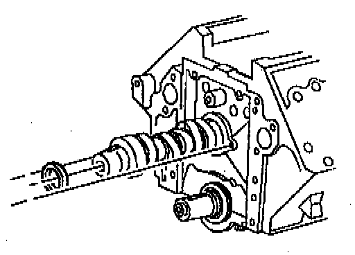 - Carefully insert the camshaft into the block, in order to avoid damage to the camshaft bearings.