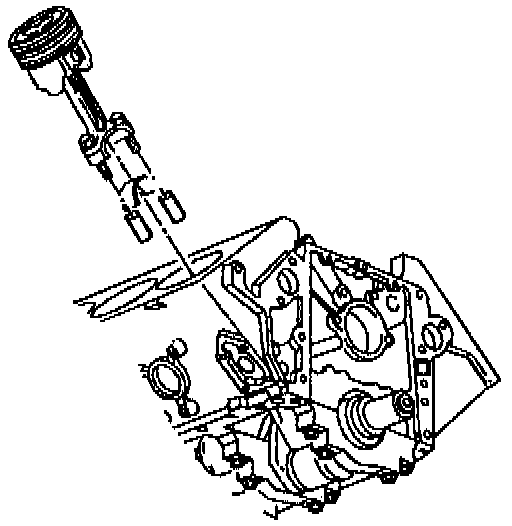 f. Tap the piston down into the bore using light blows with a hammer handle, while guiding the connecting rod to the journal from beneath the engine.