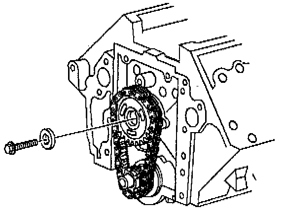b. Install the camshaft sprocket spacer, with the ID chamfer facing the camshaft.