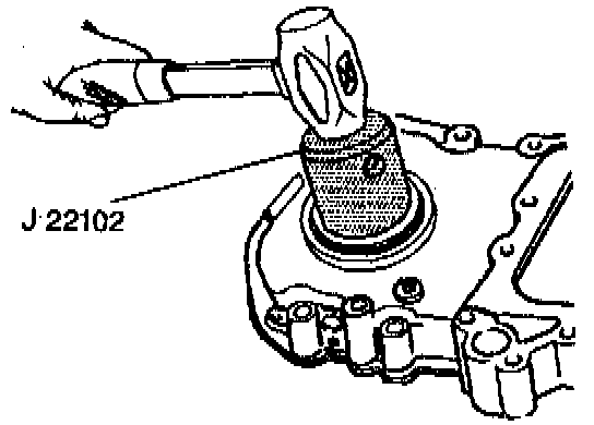 b. Using the rear crankshaft seal installer, drive the seal into the crankshaft until the tool bottoms against the block and the rear crankshaft bearing cap.