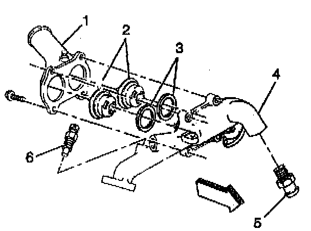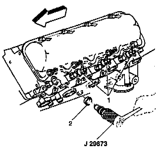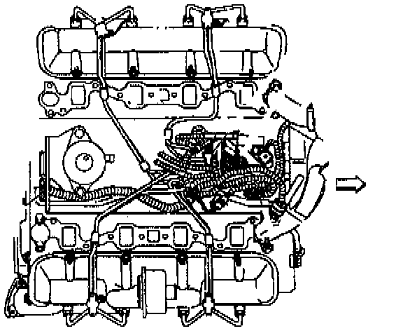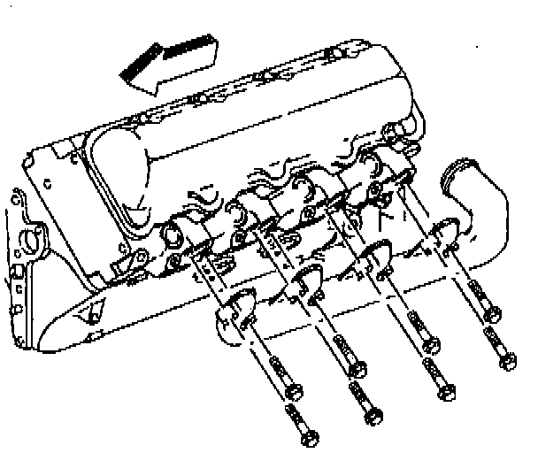 NOTE: Apply teflon sealer GM P/N1236004 on the threads of the studs that are second to the end on both intake manifolds. There are a total of four studs which require the teflon sealer.