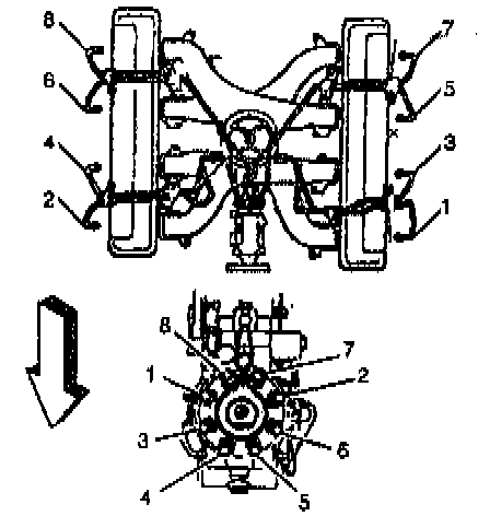 3) In sequence, tighten all of the bolts and additional 90-100° (1/4 plus turn).