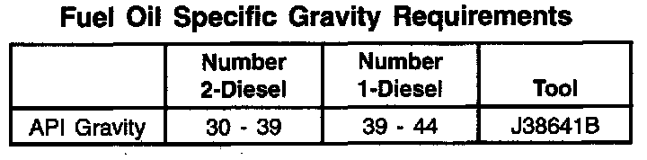 - Refer to Fuel Oil Specific Gravity Requirements table.