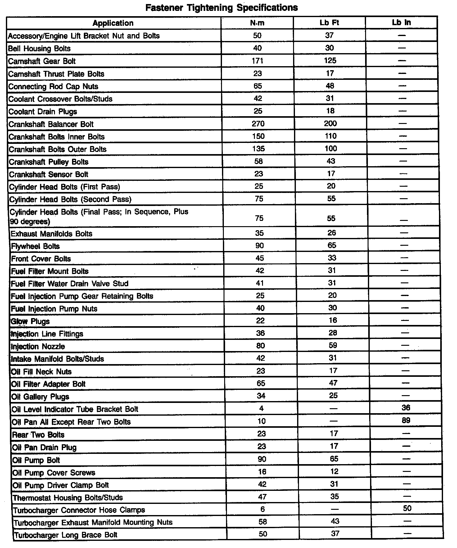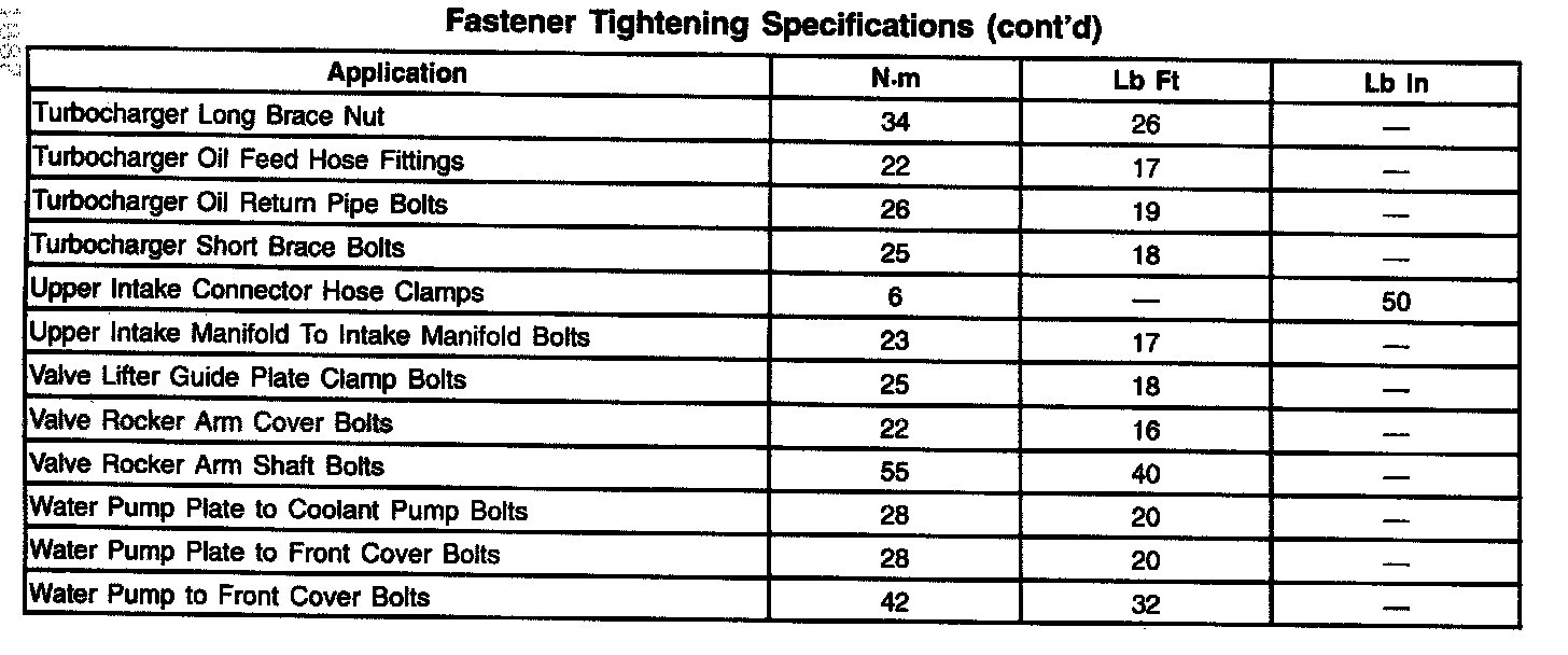 Fastener Tightening Specifications - Engine