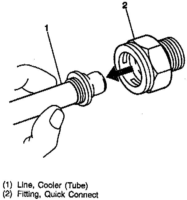 Important: The figures depict the improper installation of the cooler line into the quick connect fitting. Failure to follow the proper installation procedure could result in separation of the cooler line to connector fitting.