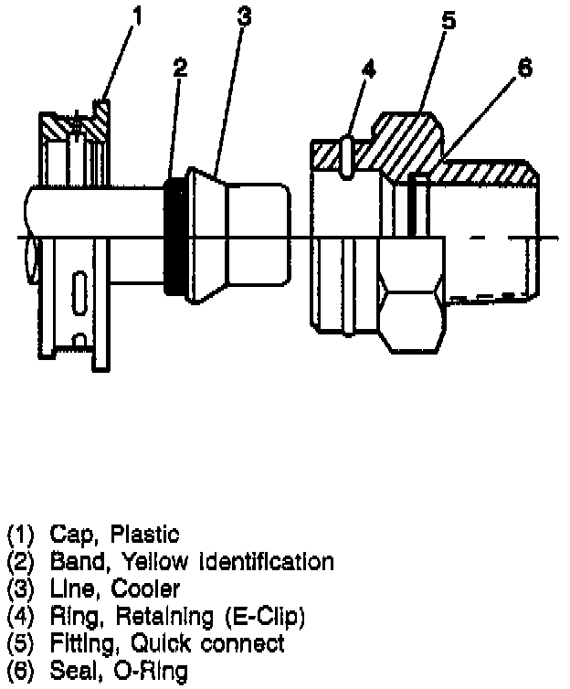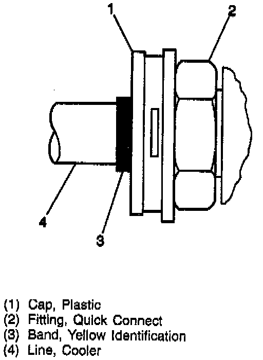 2. Remove the two cooler lines from the two quick connect fitting on the transmission or the auxiliary oil cooler by using the following procedure: