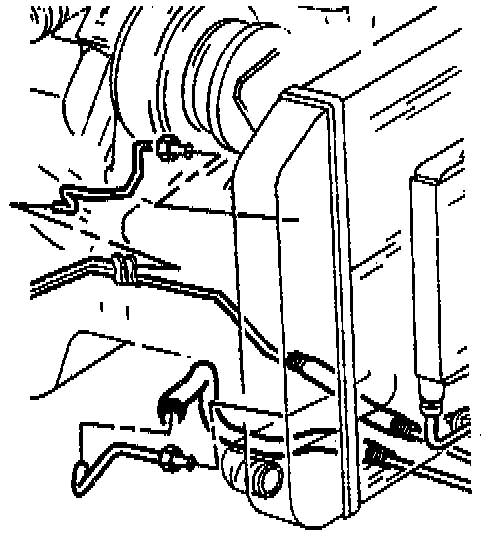 REMOVE OR DISCONNECT1. Stud and nuts securing the clips and transmission cooler lines to the engine.