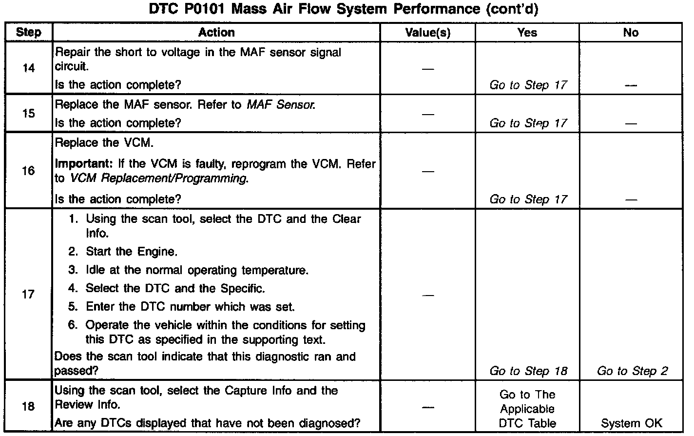 5. A voltage reading of less than 4.0 volts or over 6.0 volts at the MAF sensor signal circuit indicates a fault in the wiring or a poor connection.