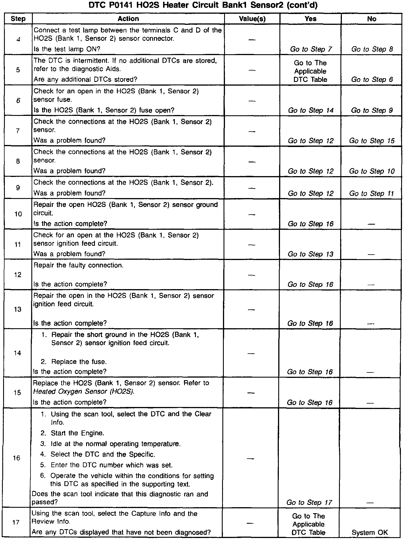 The HO2S heater provides for a faster sensor warm-up which allows the sensor to become an active in a shorter period of time and remain active during long extended idle. The DTC P0141 determines if the HO2S is functioning properly by checking the response time of the sensor. This DTC is a type B DTC.