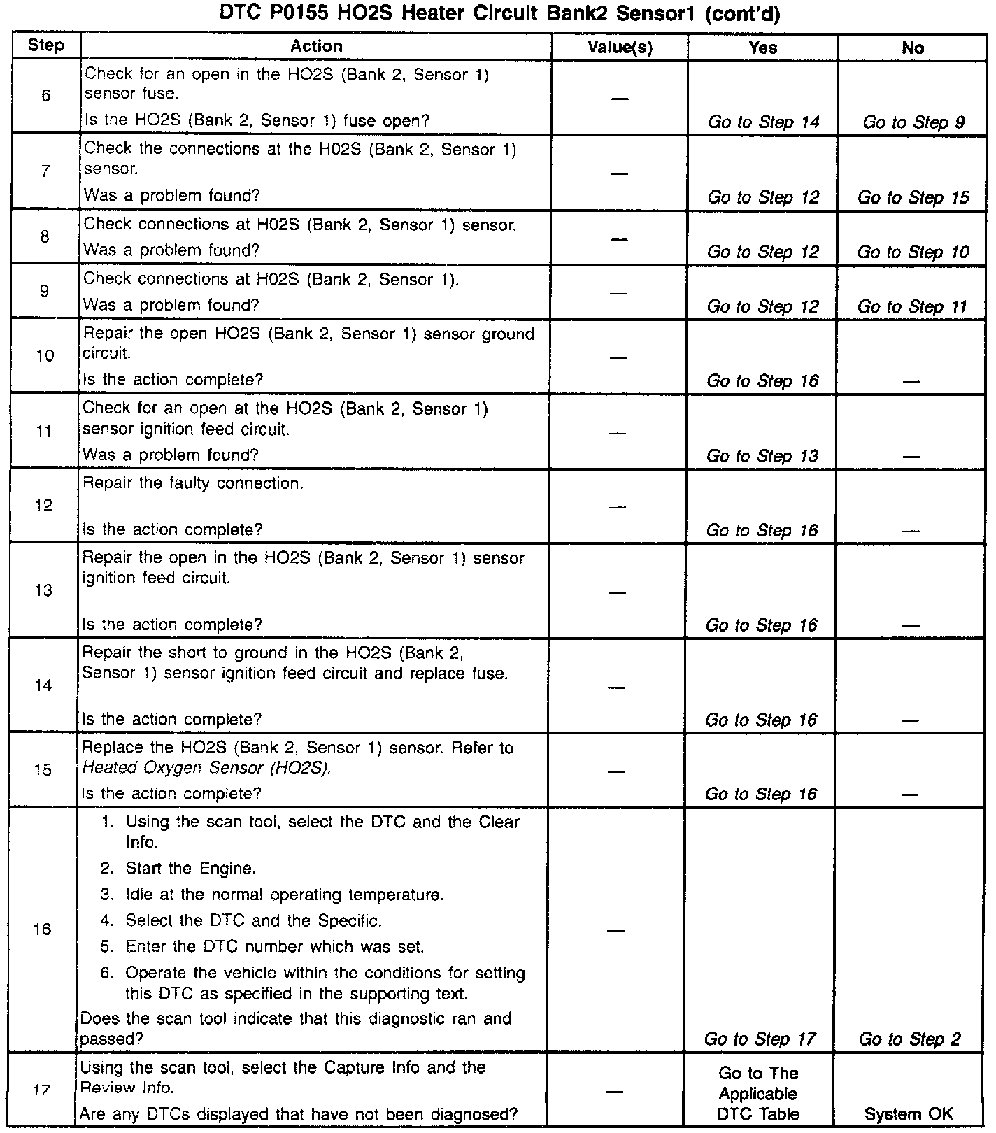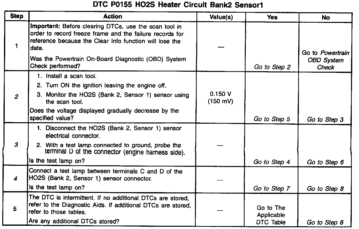 The HO2S heater provides for a faster sensor warm-up which allows the sensor to become active in a shorter period of time and remain active during a long extended idle. The DTC P0155 determines if the HO2S heater is functioning properly by monitoring the amount of time necessary for the HO2S to become active after start-up. This DTC is a type B DTC.