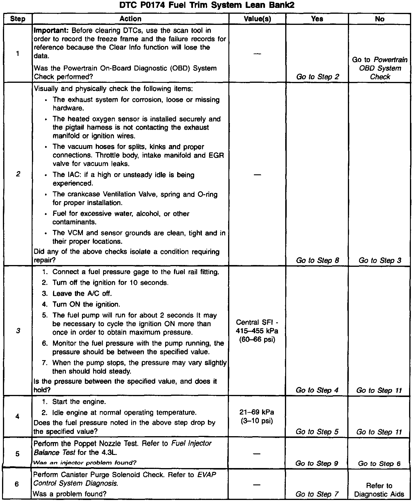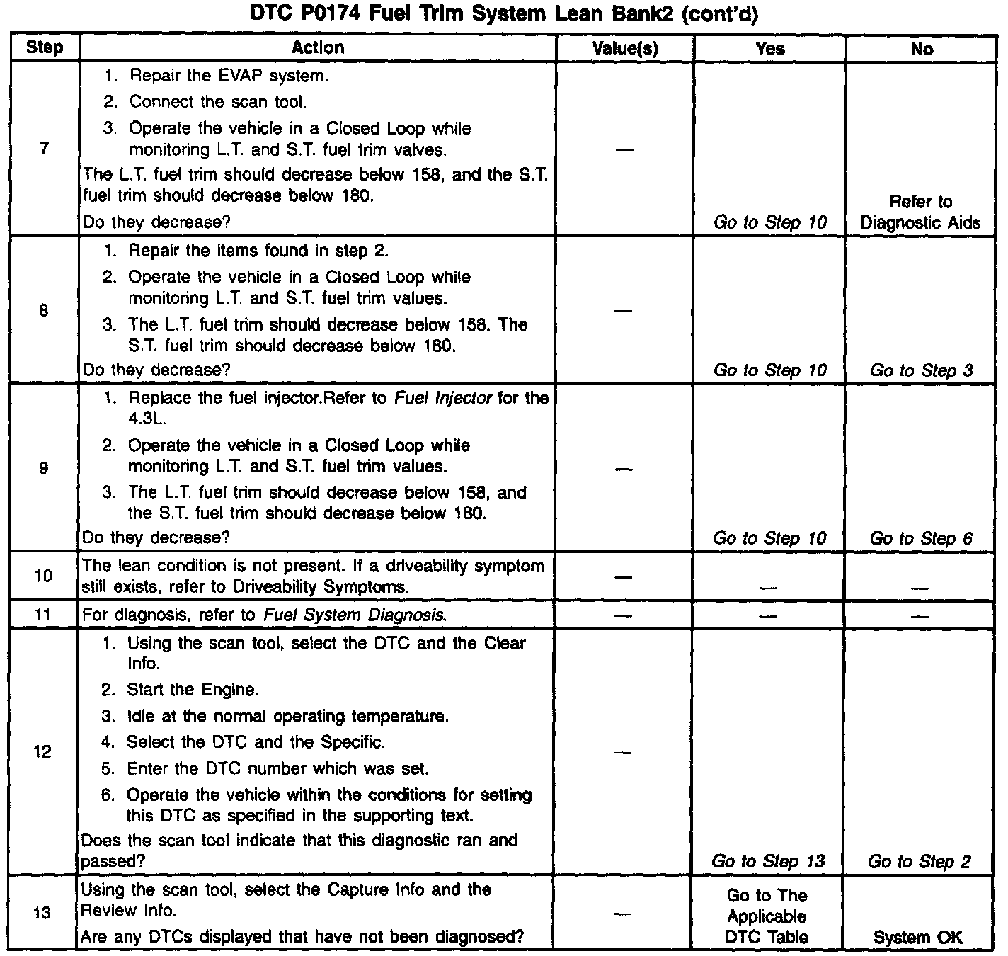 If using the diagnostic tables does not isolate the problem, try monitoring the L.T. fuel trim and fuel trim cell while operating the vehicle under various loads. This may isolate the condition which caused the setting of the current DTC.