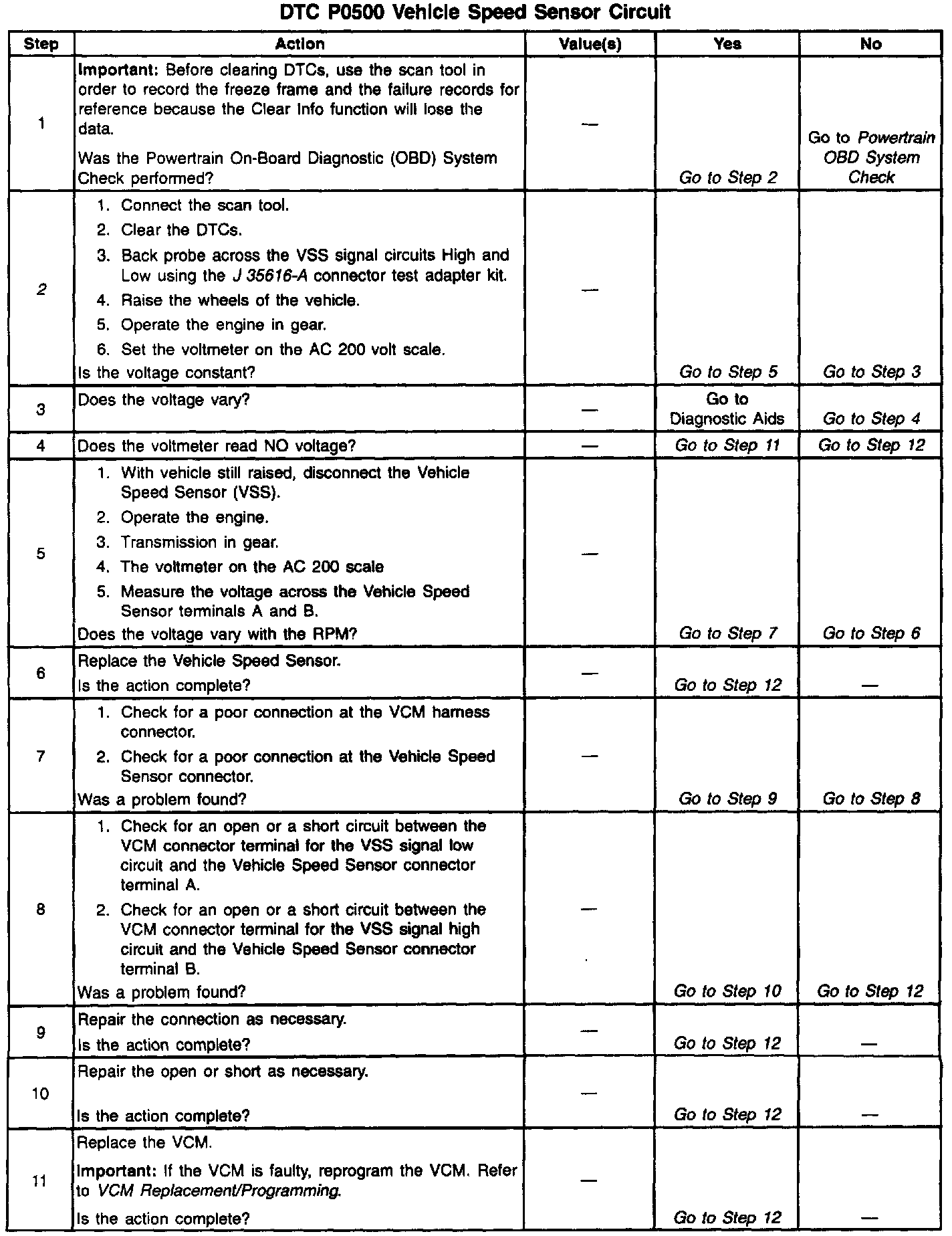 2. This step determines if the DTC P0500 is the result of a hard failure or an intermittent condition.