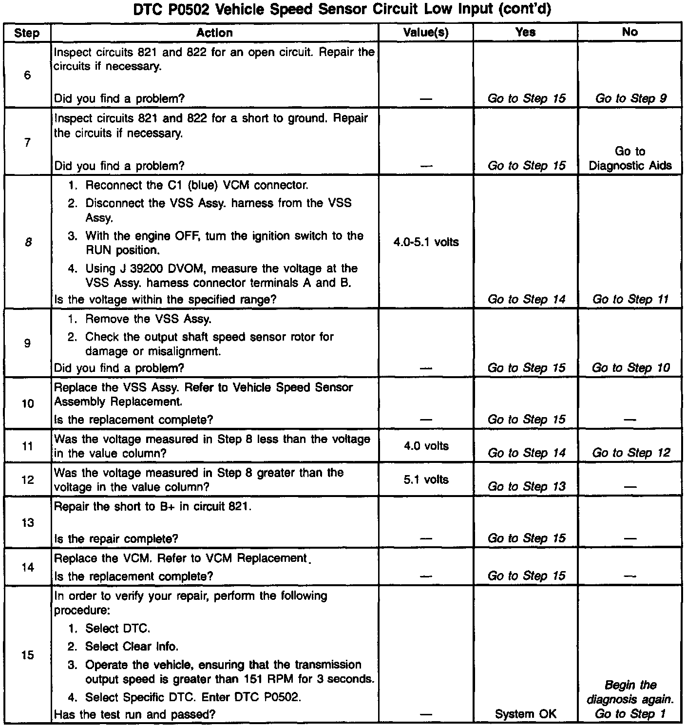 DTC P0502 sets if the following conditions occur two consecutive times: