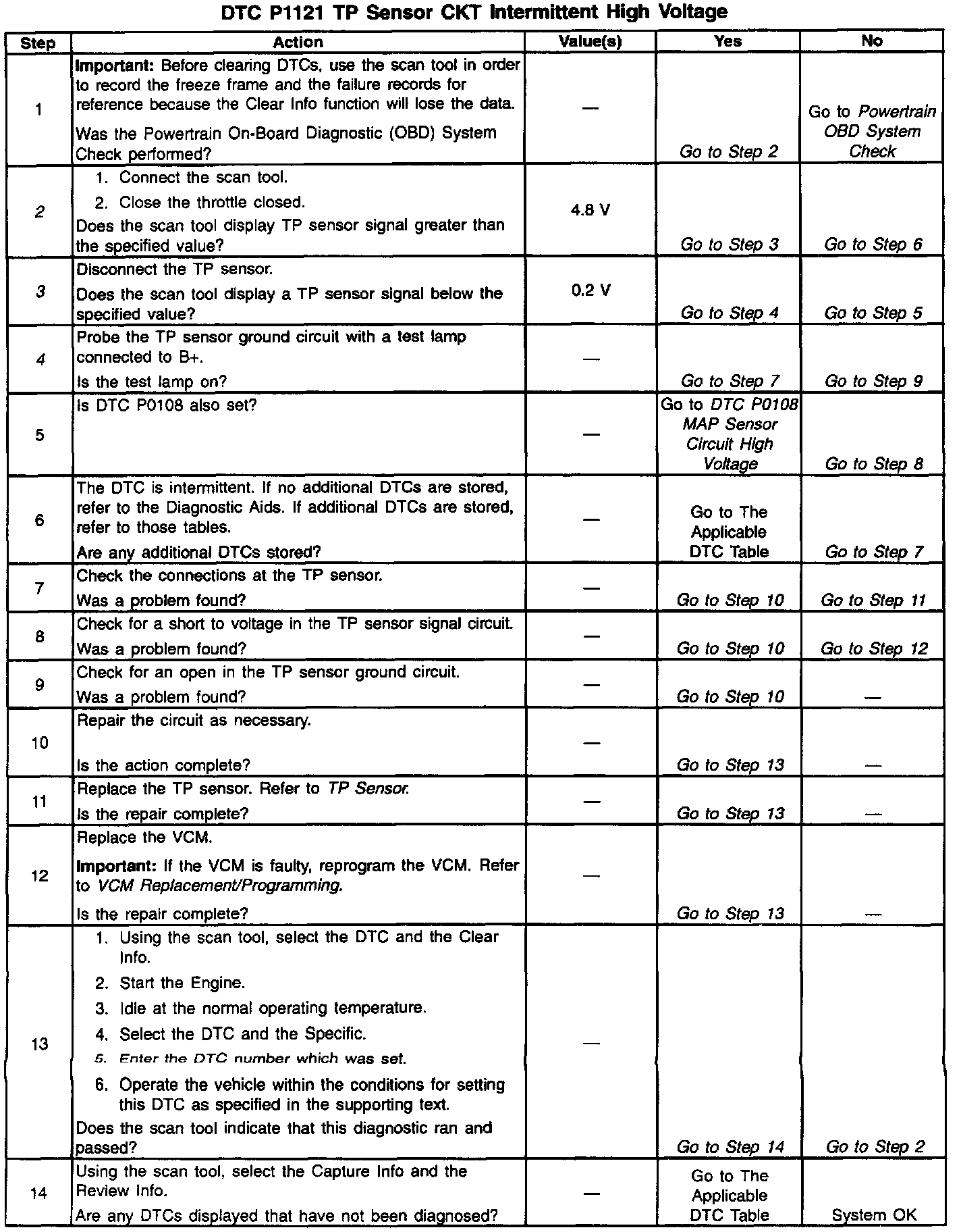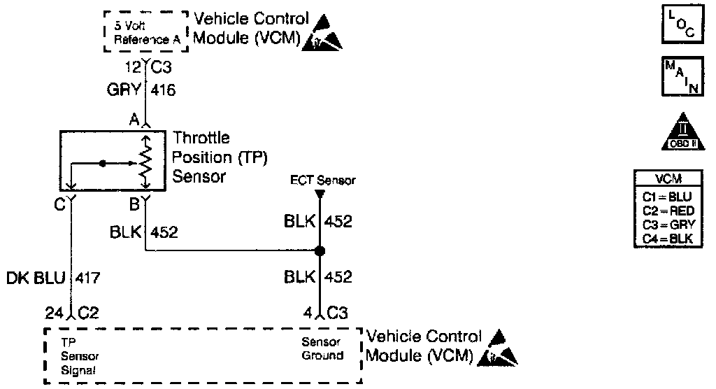 3. With the TP sensor disconnected, the TP signal voltage should go low if the VCM and wiring is OK.