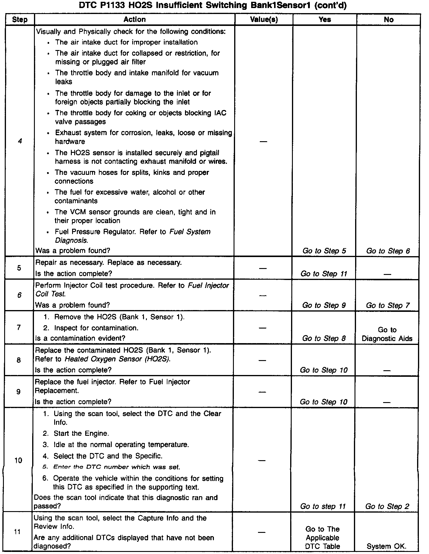6. This step checks the fuel injector and isolates the HO2S.
