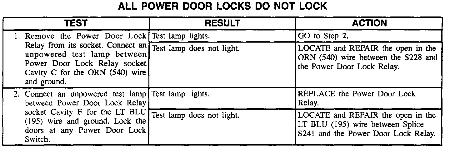 All Power Door Locks Do Not Lock: