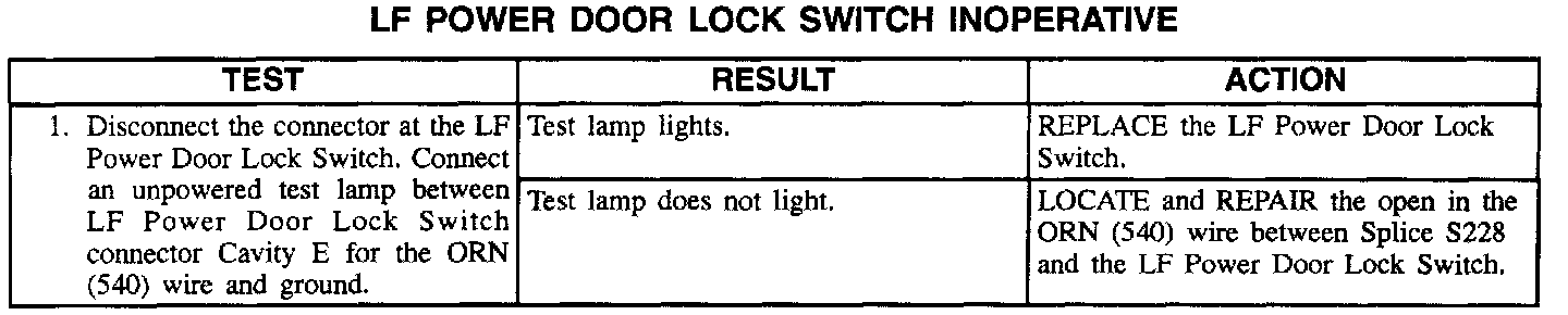 LF Power Door Lock Switch Inoperative: