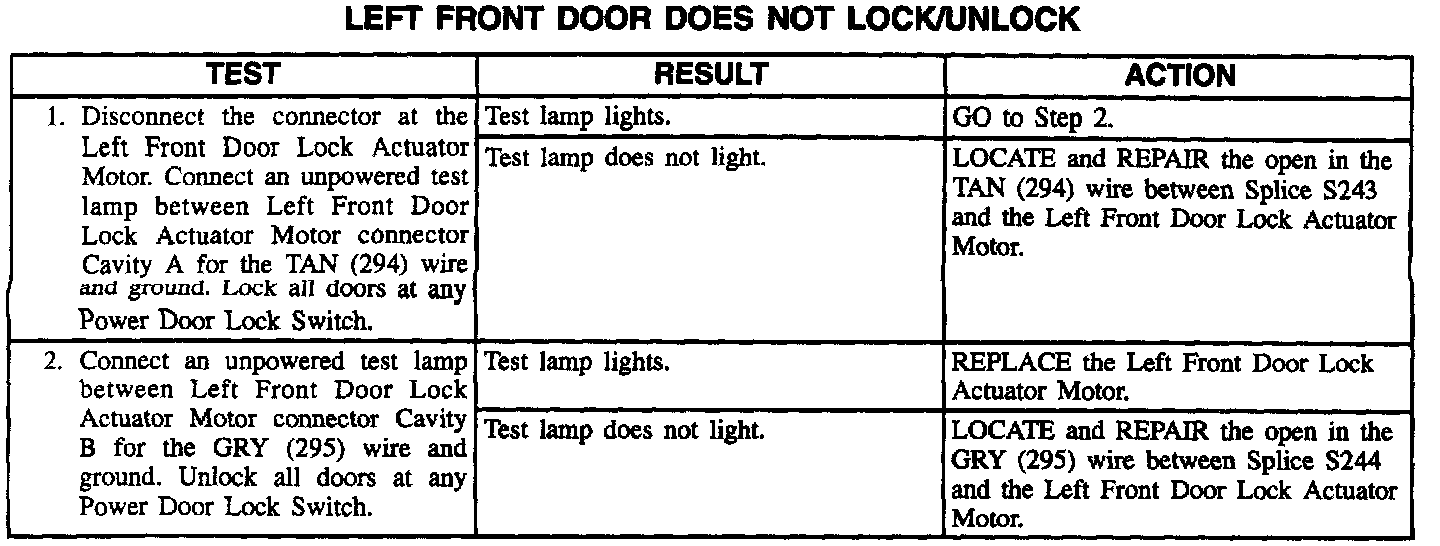 Left Front Door Does Not Lock/Unlock