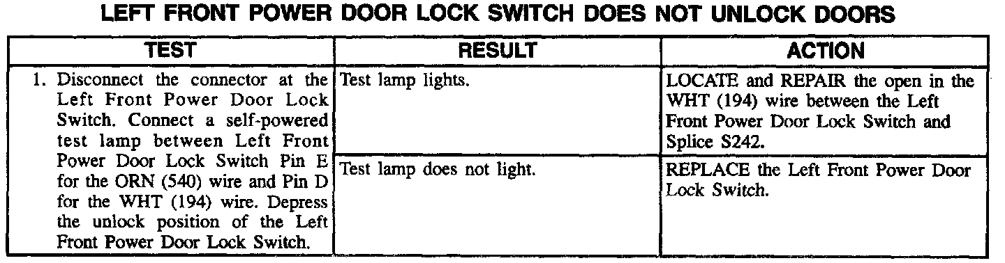Left Front Power Door Lock Switch Does Not Unlock Doors: