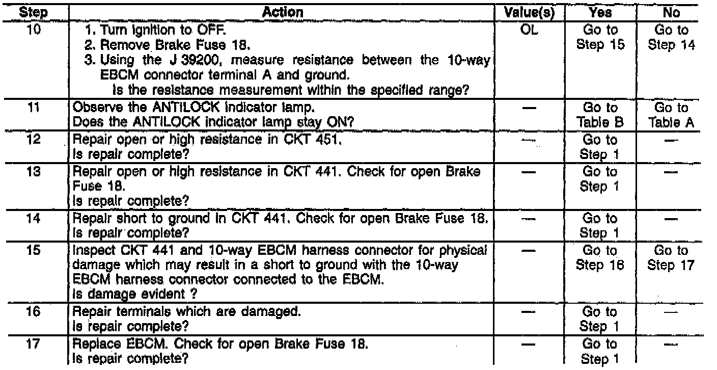 The diagnostic system check is an organized approach to identifying a ABS malfunction. It must be the starting point for any ABS complaint diagnosis because it directs the service technician to the next logical step in diagnosing the complaint. Scan Tool serial data (ABS only) is transmitted/received by the 10-way Electronic Brake Control Module (EBCM) connector, terminal F (CKT 799). Ignition voltage is supplied through the 10-way EBCM connector, terminal A (CKT 441). Signal ground is supplied through the 10-way connector, terminal J (CKT 451).