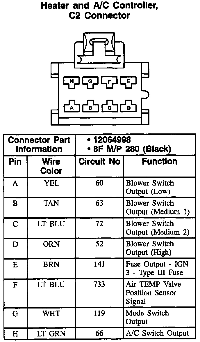 Heater And A/C Controller, C2 Connector: