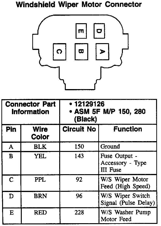 Windshield Wiper Motor Connector: